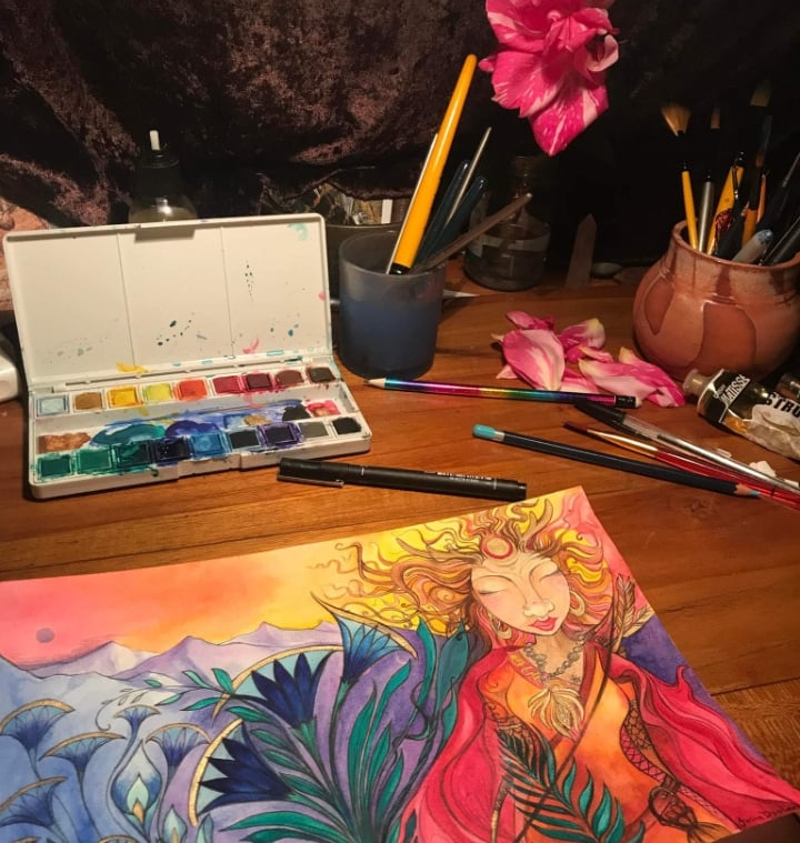 Josie Doolan is the Priestess Artist for the Sacred Moon Journal. She lives in the Lush Rainforest underneath Wollumbin in Northern NSW. Josie is a multi-talented artist and creator, who paints, makes jewellery, leads Clay Goddess workshops, sings in a Reggae band and raises 2 young men. You can purchase her original watercolour prints at josiedoolan.com